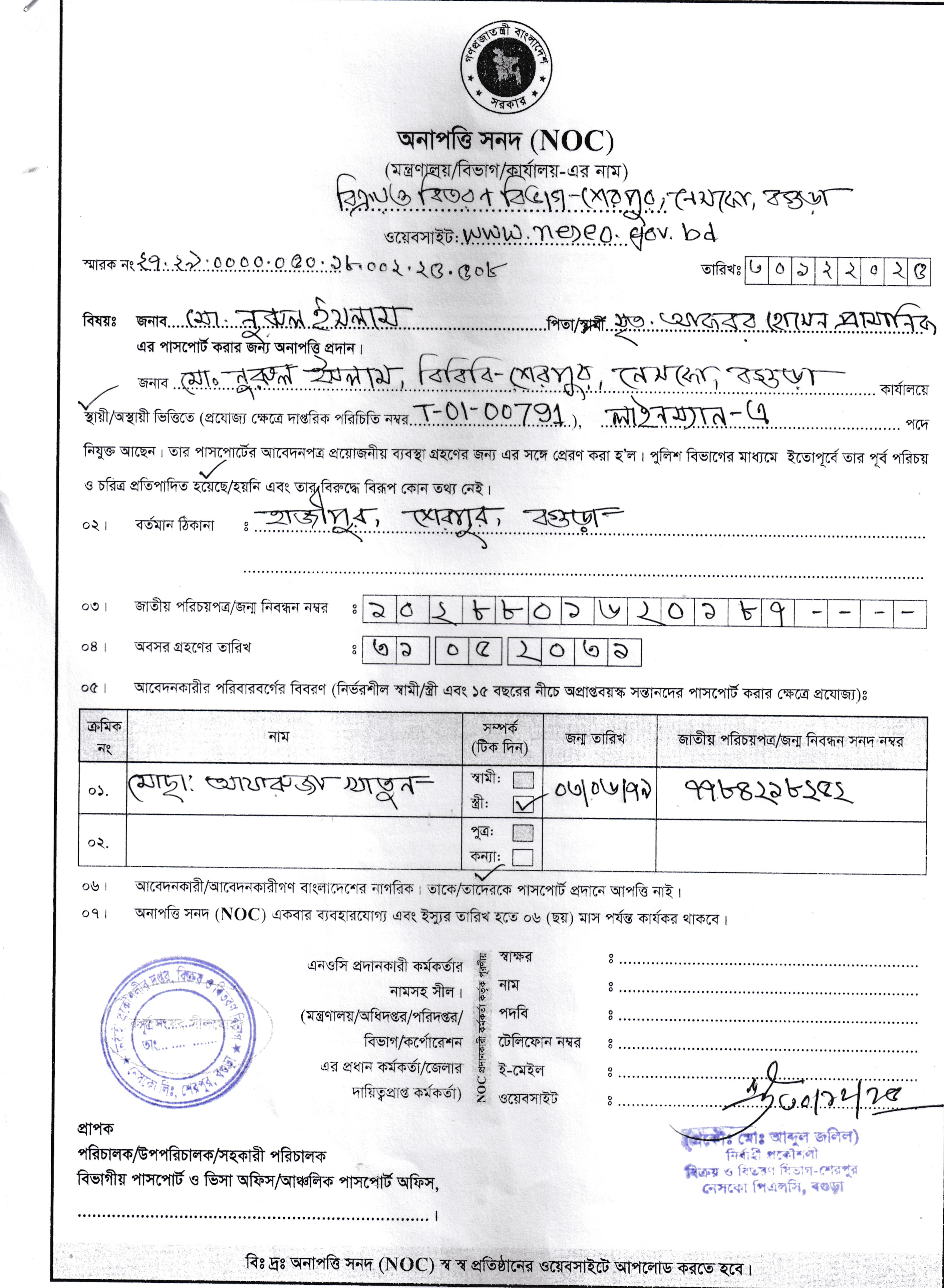 | ৩ | জনাব মোঃ আলাউদ্দিন সরকার, সাহায্যকারী, এর অনাপত্তি সনদ। | ৪৮১ | ১২-০১-২০২৬ | দেখুন | |